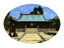 | When all the figurines and the bag of coins are correctly placed, re-enter the dragon sea. Take the coins out the bag and buy a metal disk from each of the characters (figurines). The metal discs must be hung in a specific sequence on the hooks on the wooden post next to the bridge. The symbol on each disc, cryptic clues given by the characters and the dragon on the other side of the wall through which you entered are all indications that a basic knowledge of Feng Shui is needed to work out the sequence. Two sequences are necessary - the first only partially lowers the bridge and the second one drops it to ground level. |