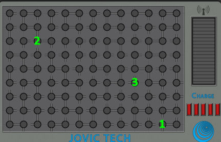 The aim is to get the charge bars to the top and all the red bars at right to disappear by clicking on specific buttons that will reboot the system.