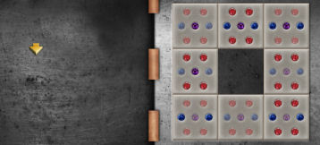 Place the 8 marbles on the slot at left.