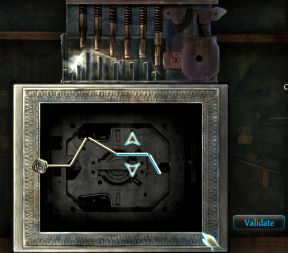 Click the parts of the pin to complement the shape of the tumblers of the lock above. Note the lines between the tumblers.