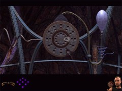 Zoom out and head back all the way to the gondola you just have seen. This time enter it. Pull the lever. When the gondola stops, exit. Turn around and walk towards the tunnel. Enter the tunnel and walk until you are standing on a crossing. Look around and you'll see a wheel shape device at your left and the same one at your right. Walk towards the gas collector at the right side. You'll have another close encounter with Dr. Bremmer.